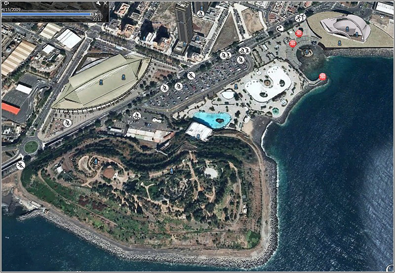Die tolle Aussichtvom Palmengarten ausauf Auditorium und Schwimmbad.